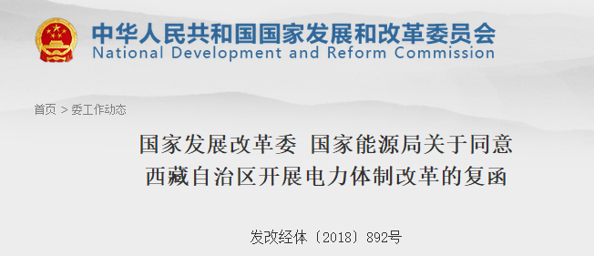 國家發展改革委,國家能源局關于同意西藏自治區開展電力體制改革的復函