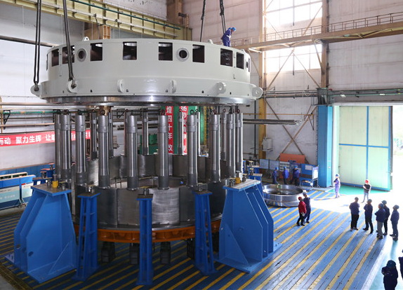 此前,經過各相關單位和職工的不懈努力下,電機公司陸續(xù)突破了頂蓋、底環(huán)、導葉等導水機構重要部件的焊接、加工難題。水電分廠按照電機公司部署,圍繞首臺頂蓋吊裝工作開展了大量全面精細的準備工作,并進行了“試吊”,為頂蓋一次吊裝成功創(chuàng)造了優(yōu)勢條件。