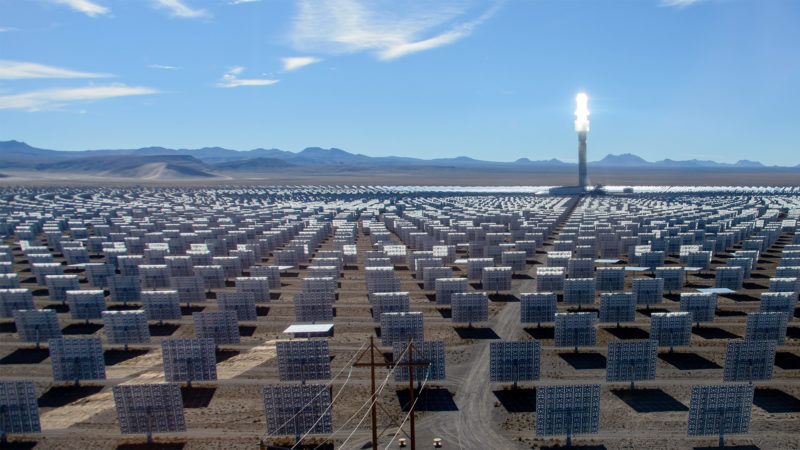 該場域將會鋪滿12,000面鏡子,利用鏡子聚集太陽光至中央220米的高塔,其內部熔鹽(moltensalt)將加熱到攝氏565度,并利用熱交換器(heatexchanger)將熱能轉移至水中產生蒸氣,可用于蓄熱或是用蒸氣來驅動發電機。